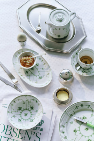 自1960年SAS皇家酒店開幕以來,「Green Fluted Plain青蘊平邊唐草」只在館內使用,未曾對外販售,遂成為設計與收藏界的傳奇。如今,皇家哥本哈根首度將這段珍稀的設計歷史公開,讓世人得以在日常生活中感受Jacobsen的設計精神,以及品牌跨越250年的工藝傳承。