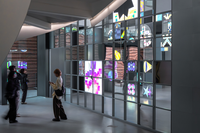 將勤美術館戶外的氣候資料與人流數據轉譯成流動的光影與聲音。©勤美術館