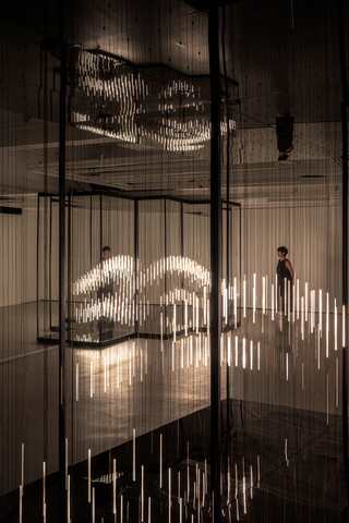 《像素力場Dynamic Field》由偏光鏡面、旋轉機構與燈光交織而成的巨大裝置。攝影」楊承