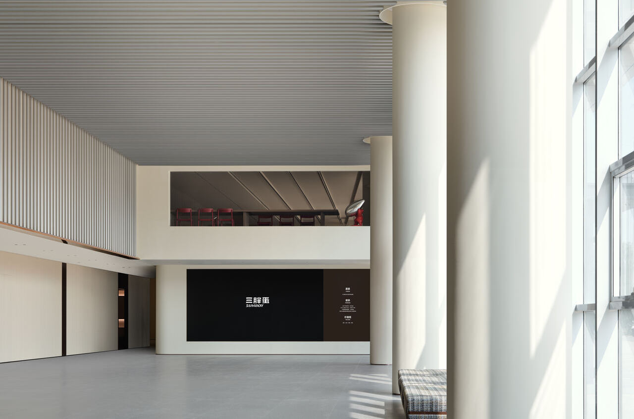 建築裡側規劃獨立辦公室,外黑內白的隔牆突顯場域氛圍的轉換,對比辦公桌和展示櫃等量體,細節上採用纖細的金屬進行修飾,如桌面的支架、桌上的台燈,以及櫃體的描邊,與玻璃門框邊緣透入的光影虛實對應,讓空間充盈張弛有度的節奏,同時呈現耐人尋味的細節。