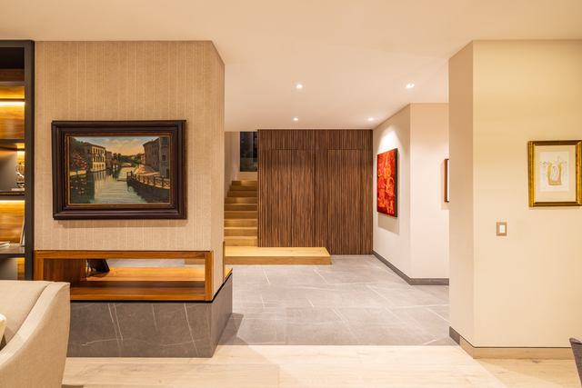 拾級而上,二樓私領域延續整體沉靜基調,以細膩細節營塑專屬於屋主的寧謐境界。主浴採用極簡風格,運用間接光源與天然材質的結合,讓實用機能與美學體驗合而為一。石材的冷峻與木質的溫潤在此對話,描繪令人放鬆的沐浴感受,彷彿將日常感官轉化為療癒的儀式感。每一處轉角、每一道光影,經過精心考量,塑造兼具隱密感與舒適度的休憩環境,讓屋主在獨處時光中感受細緻呵護。