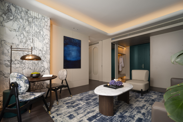 客房定位精準對應三大主要客群:針對商務菁英客群,提出沉穩、專業、高效便捷的旅居屬性;婚慶客群則重視儀式感與浪漫氣息;高端休閒客群則致力彰顯雅致、具文化浸潤的輕奢體驗。空間在優雅中保持彈性,讓同一間房得以承載不同場景,充分展現「一室多境」的概念。