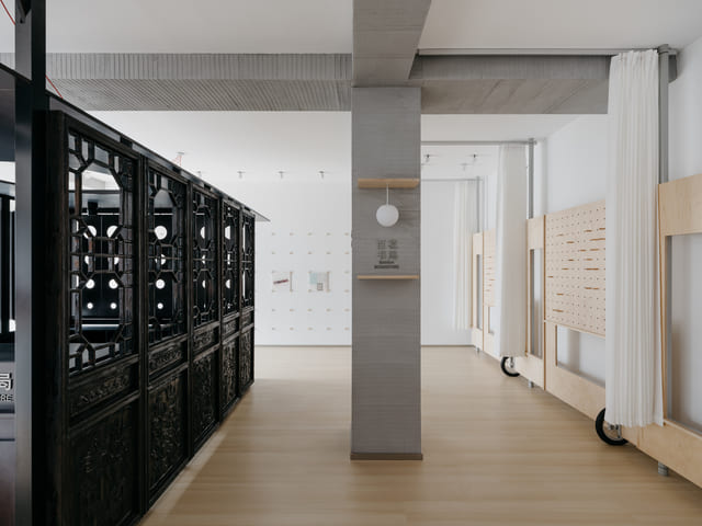 作為崑曲博物館原有的書屋,設計師的想法並不是以全盤現代化的思維覆蓋原本的空間來創造話題,而是提出一件被長年忽略的藏品:堂名擔,作為整體設計的起點。這件藏品原是江南傳統戲班中常見的便攜式舞台,輕巧且易於拆卸和組裝,待組裝完成,任何空曠的場地頓時即擁有台前和幕後,可供演員大展身手。
