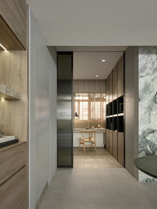 以長虹玻璃門作遮擋,讓書房輪廓在光影倒映下,顯得溫柔而細膩。