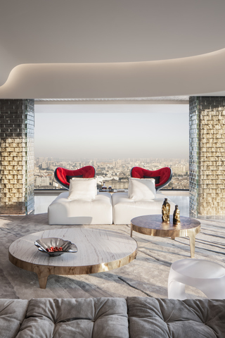 西安古城核心距城牆與永寧門僅150公尺,窗外便是長安城的千年肌理。本案即坐落於此,讓歷史景觀與當代生活在此直接對話。這樣的地理位置,在西安是絕無僅有的稀缺。因此,設計團隊以「古都新月、千年底蘊、活力再造」三元素,呈現其藝術與設計概念,為這座居所定調,構築與城市歷史產生深刻連結的高端住宅。