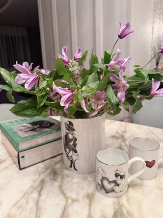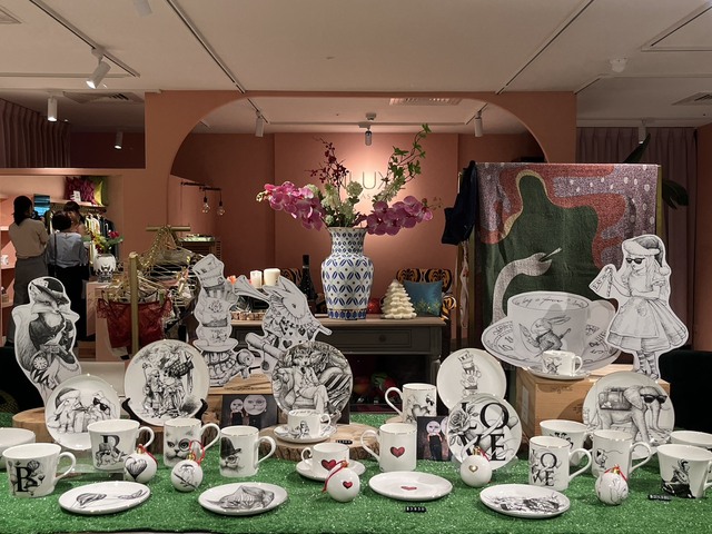 其中最受矚目的《愛麗絲夢遊仙境》系列,以Lewis Carroll的經典文學為靈感,將故事中的角色融合Rory Dobner招牌的黑白線條插畫,重新演繹奇幻場景;柴郡貓的神秘微笑、瘋狂帽客的天馬行空,都化為細膩線條,呈現於馬克杯、點心盤與燭台之上。喚起童年幻想之餘,也象徵當代人對「情緒價值」的追尋──對新世代的消費者而言,商品不再只是物件,而是一種情感寄託與自我風格的展現。Rory Dobner的愛麗絲系列,正巧用其迷幻與童趣風格,加上鮮明的故事,喚起人們的內在療癒感與想像力。