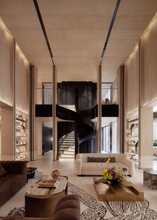 以專案獨特的湖景資源為核心,摒棄傳統豪宅的符號化表達,通過空間敘事與功能革新,結合「物理容器」與「精神載體」。空間規劃聚焦「療癒」與「交互」雙重維度:設計客廳與茶室等不同氛圍的家庭聚場,平衡熱鬧與私密;同時以藝術化手法重構社交場景,打造獨立動線確保多代生活互不干擾。設計細節強調「隱性奢華」,頂級材質配合智慧化系統的無聲嵌入,共同服務于居者的精神共鳴與生活質感回應對自然、藝術與身份的深層訴求。