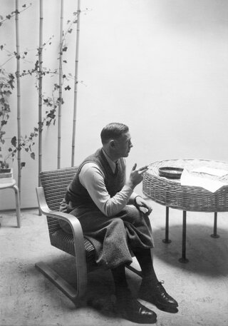 阿爾瓦.阿爾托在維堡圖書館測試懸臂椅設計。©Alvar Aalto Foundation