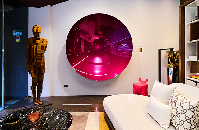 在藏家提供的精彩呈現之外,易雅居此次亦不藏私,展出包括阿尼什.卡普爾(Anish Kapoor)的《天空之鏡(Sky Mirror)》、安東尼.戈姆雷(Antony Gormley)的《虛無VI(Shrive VI)》、伊恩.納瓦羅(Ian Navarro)的《重擔(Burden)》,以及達米恩.赫斯特(Damien Hirst)的《黑暗日子(Dark Days)》等當代藝術經典。這些作品並置於易雅居的生活場域之中,營造出跨越私人與公共、美學與日常的多重對話,落實「Living with Art」的策展理念,道出藝術並非少數群體的精神享受,它亦能走下嚴肅殿堂融入生活場境,觸發自身與他人的心靈共鳴。