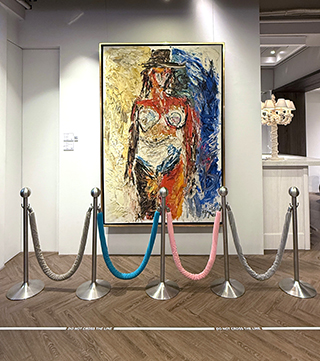 除了在型態與概念上的衝擊,還有跨時代的藝術表現。比如,璞永建設董事長楊岳虎先生所出借的巨幅畫作《Nives》,創作者荷蘭藝術家卡雷爾.阿佩爾(Karel Appel)活躍於1950年代至2000年代,此作屬於阿佩爾的「裸體系列」之一,將身體抽象化為兼具力量與性感的形象,曾於紐約、科隆、巴塞隆納與海牙等地巡迴展出,可見在國際藝術史上的重要地位,楊岳虎先生此次出借,讓觀眾得以一窺戰後歐洲現代藝術精神的核心。
