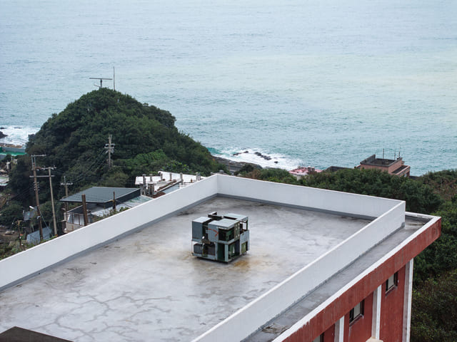 頂樓的《把自己活成一道光》裝置。利用變電箱切割後的餘料製作,嚴謹有序的立方體象徵台電第一線員工的敬業精神。