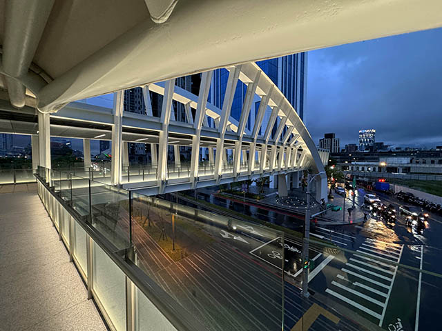 「南港立體連通平台」以南港車站為核心,串聯周邊的捷運站、商業區、公園及建築的立體人行系統,設置嵌入式或隱藏式燈具,避免燈具外露,同時考慮到眩光與光害,欄杆與邊緣照明採用間接打光,以人本導向的照明策略,採用隱性低尺度設計,重新編織城市夜間的呼吸脈絡。設計概念明確、技術執行完善,兼具技術品質與公共性,成功地以人工平台光環境連結都市的公共空間,因此獲頒評審團特別獎給予肯定。