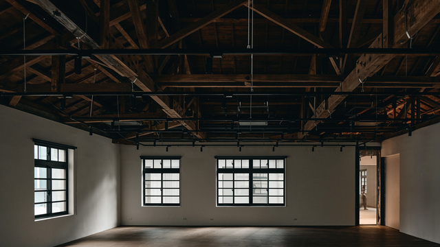 二樓空間完整保留原始大跨距木桁架結構,使建構邏輯和時間痕跡被清楚閱讀,成為安靜而有力的存在。