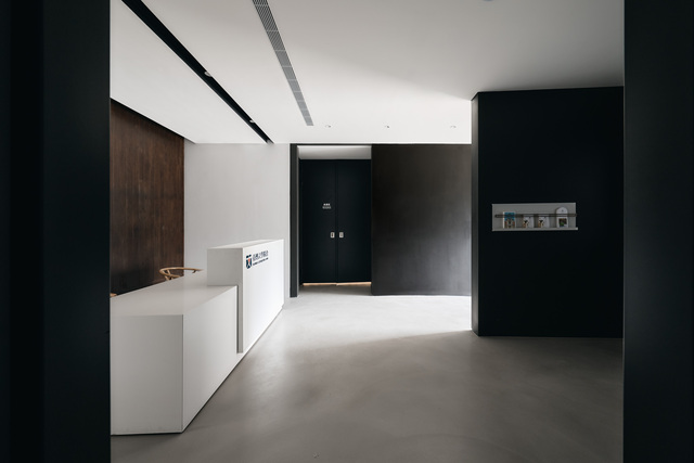 在南北翼之間的凹入空間置入低彩度的語彙,重塑具功能性的入口大廳。