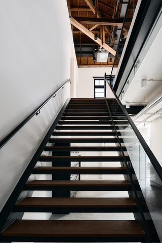 入口、樓梯與電梯等關鍵節點藉由內斂的鋼材和玻璃營造明確的新舊對話,同時提升空間的可讀性。