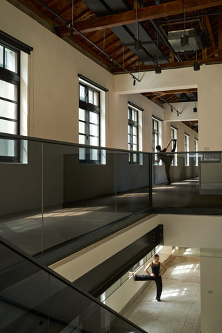 不同於以往靜態閱讀為主的展示形式,這裡被重新構想為一座以文學為核心的平台,透過動態展演、音樂或跨域合作,讓文本轉化為可被感知的經驗。這樣的想像,也在完工時迎來具象的瞬間,拍攝照片當天,兩位舞者在空間中以身體演繹文學的動態感,跳躍時肢體線條與木桁架幾乎平行,那一刻令許維蓉為之動容──建築不再只是被觀看的對象,而是成為承載行動和感受的場所。