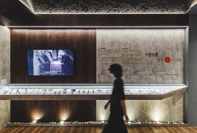 入口左側則為一條時光長廊,透過影像紀錄與整齊羅列的鍛造工具,參觀者能親眼見證砲彈化為利器的過程,並在歷史照片的流轉中,閱讀品牌走過半世紀的耕耘與回憶。
