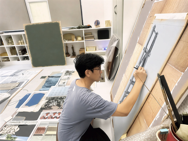 在創作演進的歷程裡,他加入拼貼的手法,透過剪裁、黏貼、層疊與抹除的動作循環,不僅解構原始畫面,同時也是重塑新的整體結構;延伸使用樹脂澆鑄,觀察負空間(模具)與正空間(鑄件)形塑的關係,引導觀者思考作品中的每個組成存在於作品結構的必要性,回顧創作過程中取捨的元素,將其融入作品的表達。