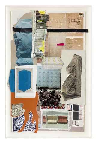 〈形外之形1〉(The Shape Behind the Shape 1),2025,油彩、壓克力、炭筆、轉印、哈內繆勒冷壓竹紙(265gsm)、醋酸膠片與現成物拼貼。