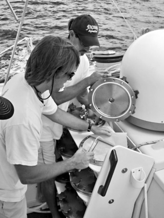 傑夫.霍夫曼在魔法師二號船尾收集樣本。