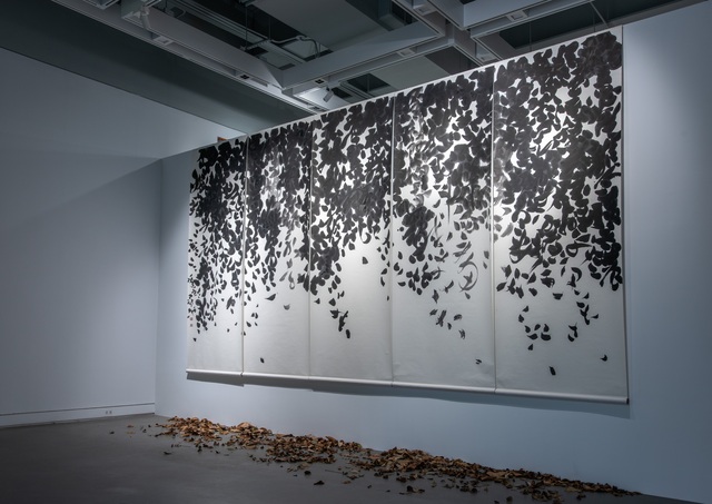 何創時書法篆刻類特別獎,紀冠地作品〈落葉系列—秋意濃〉。
