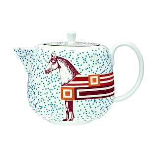 故事始於設計師Gianpaolo Pagni自Émile Hermès博物館館藏中發現的一匹馬的雕刻。他以騎師的絲巾騎士服為靈感,為馬匹裝飾繽紛的圖紋飾帶,構成此餐瓷系列的主要元素。俏皮的設計與活潑色彩貫穿全系列,提供隨心搭配使用的樂趣。