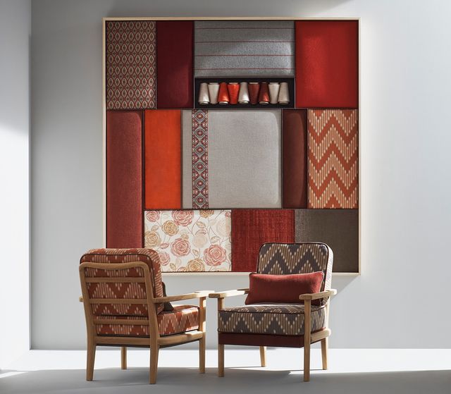 另一特色是,新系列主打紅色、原色、金黃色、藍色與戶外系列,各色有純色、條紋、格紋等經典布料,並搭配印花、刺繡與緹花等織法變化,像是,刺繡在羊毛上的裝飾有壓線的效果、以羊毛與喀什米爾法蘭絨上的華麗飾帶呈現、在緹花織布機上織出色彩繽紛的布料並呈現立體效果,強調所有的織法款式都與能純色布料搭配,創造最適宜設計家居的優雅風景。特別的戶外系列研發出全新的Trevira® Dehors Passepartout 戶外布料,不但極為耐用,又保持了棉麻的極度柔軟特性。所有Trevira®產品都是在緹花紡織機上製作,結合精細度不同的雙股線,創造出緊密又俐落細緻的條紋。