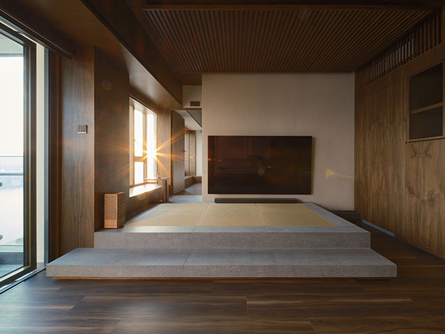 曾長年旅居日本的退休夫婦,總會回憶起那些年在日式旅館的住宿體驗,而當他們步入熟齡階段時,開始考量人生的後半生活。空間融合傳統日式風格,地台鋪設蘆葦編織的榻榻米,在草蓆上席地而坐即能享受慵懶時光;一邊泡澡、一邊欣賞窗外風景,打造猶如置身日本的旅居體驗。透過空間讓居住者重拾旅遊度假的恬意,並展開後半人生的生活。