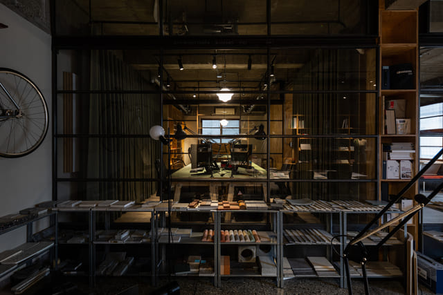 繼承了前任租客留下的玻璃隔間與夾板櫃體,並從中爬梳屬於設計團隊的空間脈絡和工作秩序。