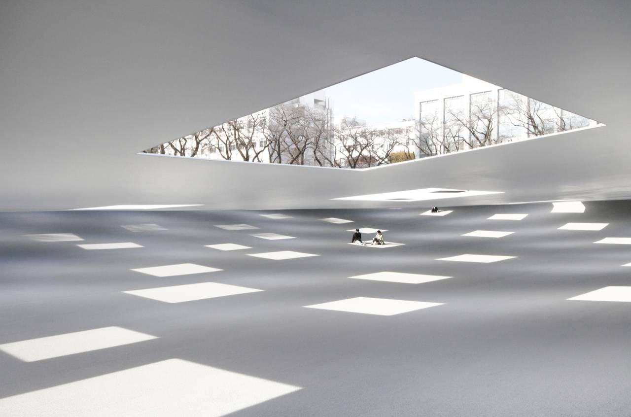 隨著科技日新月異,在熙熙攘攘的大城市中,高樓大廈比比皆是。雖絢爛奪目,卻使我們淡忘鳥語花香,忘記靜下心聆聽自然的耳語。繼神奈川工科大學KAIT工坊,石上純也再度操刀,利用KAIT工坊東側毗鄰校園的一角,設計一座多功能的KAIT廣場(KAIT Plaza),不但落實與自然共存的理念,同時兼顧建築的實用性,新穎的建築結構不僅令人嘆為觀止,同時也為建築設計掀開新序幕。 室內的地平線 在既有的框架中去蕪存菁找出突破點,開創出新道路,是石上純也的設計理念。由於神奈川工科大學校園內部多有高樓環繞,阻擋住原有的自然風光,於是設計團隊透過巧思使用不同於傳統建築的設計模式,使KAIT廣場的結構並非往上建設,而是向地下延伸。 透過壓低屋頂高度以保留周邊建築的窗景。 KAIT廣場,佔地面積為129,335.04平方公尺,建築面積為4,109.78平方公尺,延床面積為1,376.42平方公尺。設計初期,設計團隊從KAIT工坊內部看出去的景色為出發點,運用寬廣的占地,嵌入一座低於地平面約2公尺深的建築,不但能顧及KAIT工坊的窗外景色,也同時創造出與地形融為一體的新天地。 考量到地面廣度以及周邊建築的窗景,設計團隊盡量將廣場建築的天花板壓低,地面則採用弧狀設計,使屋頂與底面的交接恍若天空與地面相連。人們在建築中宛如置身在地平線,將所有自然景色盡收眼底。 KAIT廣場位於神奈川工科大學校園,佔地面積為129,335.04平方公尺,建築面積為4,109.78平方公尺,延床面積為1,376.42平方公尺。 半露天廣場 乍看KAIT廣場內部空曠遼闊,卻蘊含豐富多變的自然風光和純粹真摯的情感。廣場的鐵皮屋頂採用半露天設計,共設有59個不規則排列的方形大開口引入日光。低矮的天花板不只能避免陽光直射,光線也僅會照亮每個開口區塊,利用自然的光與影為建築內部交織出簡約之美。 屋頂施工過程。 廣場融合了科學技術與自然元素,試圖拉近人們與環境之間的距離。為了打造出室內設計與室外環境融合的新空間,屋頂上的方形開口並未裝設玻璃,因此即使身處室內,也能感受環境的雨水輕打,微風吹拂。靜謐廣場彷彿世外桃源,無論風雨陰晴、四季遞嬗,人們在廣場內部亦有如同身在戶外的體驗,盡情徜徉在大自然的懷抱中。而屋頂的半開放式設計不單照亮空間,更在視覺上增加風景的延展性,在半露天型式裡保留一半環境特質、一半建築要素,使室內呈現「室外」的既視感。 科技與自然並存 相較於由多根鋼柱支撐而起的KAIT工坊,KAIT廣場內部以毫無梁柱結構而備受矚目。無柱結構工法在原有的地理限制下取得平衡點,創造出宛若地下丘陵般綿延無際的寬廣場域。廣場的建築比例、材料及技術皆為土木工程,巨大的鋼筋混泥土地樑基礎上設置了83跟樁子和54根地錨,能承受來自各方的載荷,並滿足各式型態及特殊使用功能的要求,為建築設計帶來靈活性。由於建築的尺度巨大,最大跨度為90公尺左右。 隨著季節變換,鐵皮屋頂的高度因熱漲冷縮,會有大約30公分的高低差距,有如一座會呼吸的建築。無梁柱設計也提升了廣場自由運用可能,讓寬敞明亮的無障礙空間,提供校園作為多功能用途的共享場域,學生們平時不僅能在廣場中自在地休息、小憩、談天;雨天時,體育生們亦能進行短跑練習,想在廣場舉行任何活動或展覽也不成問題。 利用自然的光與影為建築內部交織出簡約之美。 廣場地面呈現丘陵般的斜面,可供人隨意坐臥靠躺,取代座椅功能,減去擺放家具的必要性。地面材質則使用鋪裝車道的透水性瀝青,地面可瞬間吸收落下的雨水並使其流入土壤中,令地面維持乾爽的狀態,減少雨水接觸到肌膚的不適感。 當人坐在廣場內部,可以感受到身體與建築直接的緊密連結並與周遭環境合而為一,接受微風吹拂,仰望雲層及陽光變化;觀察光影交替,享受雨水拍打;欣賞雪花靜落,感覺似是抽離,卻又身在其中。在喧囂的大城市中,這裡宛若新世界充滿自然的氣息,為繁忙的人們打造能夠放慢腳步和療癒心靈的空間,站在地平線觀賞萬物變化,捕捉打動人心的美好時刻。 屋頂設置共59個大方格,營造室內外流通的洞口,同時照明廣場內部。 石上純也在KAIT廣場作品,以獨特的空間結構能滿足各種需求,比起人們「使用」空間的方式,他更希望能將設計核心著重於人們「身在」廣場中的感受。KAIT廣場不單是可善加利用的多功能空間,在這裡度過的每分每秒,所有切身體會到的感受才是此建築帶來最珍貴的寶藏。 設計師簡介 石上純也建築事務所創辦人/石上純也 畢業於東京藝術大學建築系,曾任職於SANAA建築事務所,並於2004年成立石上純也建築事務所。主要作品為《Vijversburg遊客中心》、《水庭》,《神奈川工科大學KAIT工房》為其建築代表作。2019年獲邀設計蛇形藝廊夏季展亭。2018年於巴黎卡地亞當代藝術基金會展出「Freeing Architecture - 自由建築」,並於隔年巡展至上海當代藝術博物館。曾榮獲日本建築協會獎、第12屆威尼斯建築雙年展金獅獎、每日設計獎等多項獎項肯定。 圖片提供與版權」石上純也建築設計事務所 撰文」紀奕安