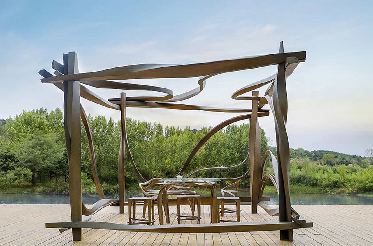 《山扉夜坐》:「抱琴開野室,攜酒對情人。林塘花月下,別似一家春。」—王勃 CROX闊合設計以茶葉為靈感,建造出了一方野室。自然界的茶葉每一片都是獨一無二,經由水的沖泡後卻組合成了另一種味道,CROX闊合設計認為就如同不同自然型態的單元構建,如同行草地勾勒組合出動態空間,也形成了不同使用功能的家具。 將方桌放置在野室正中,更能代表中國人喝茶的精神與習慣—方桌是重要的生活元素、是思考或交談時離不開的物件,同時也表達對四面八方來客的歡迎。 資料及圖片提供」CROX闊合設計 編輯」歐陽青昀