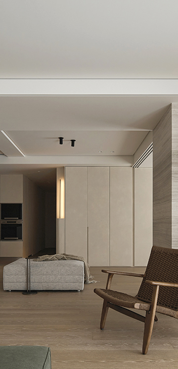 • 胡碩峯擅長以現代極簡刻劃大器空間,以低斂、秩序、淨簡與機能性作為經緯開拓無限可能,作品縱橫頂級住宅與知名品牌商空。同時,他喜愛旅行、文學、音樂、電影,將廣博養份融入設計思考裡,本身亦是一位著作豐碩的建築師,豐厚的文化涵養映現於設計之中,作品除了精煉大器,亦深具人文溫度。