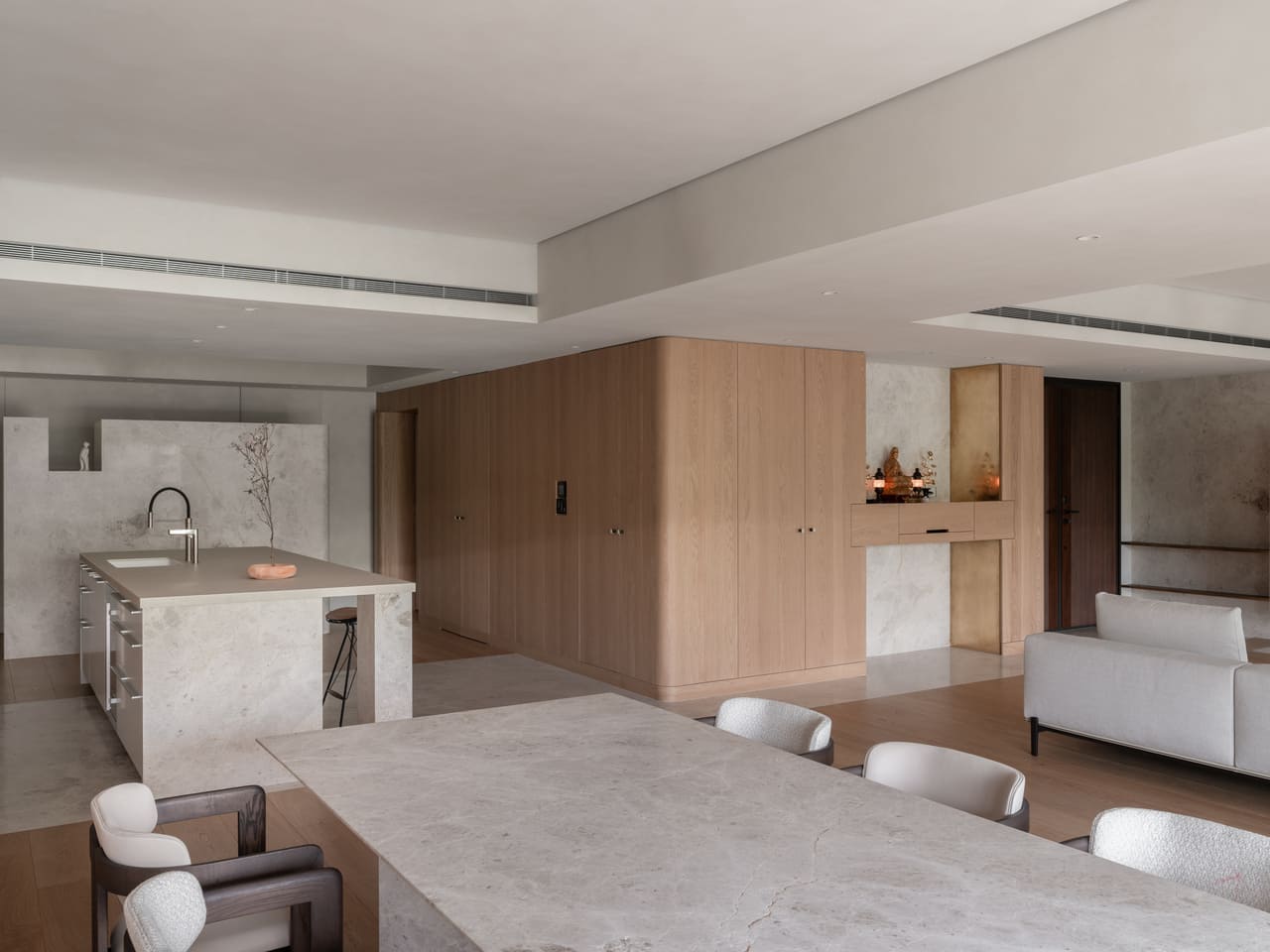 設計上以克制的語彙重塑尺度,將信仰與日常一同納入,刻劃沉靜而持續的居家場景。