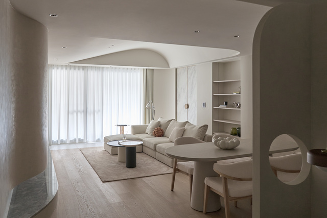 每一道弧線都是生活的流動。全案注重光線、空氣和視線的流轉,從玄關一路延綿至窗邊。