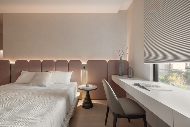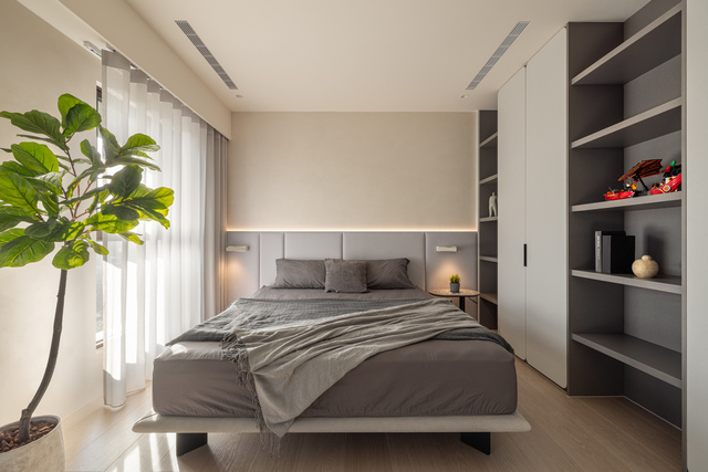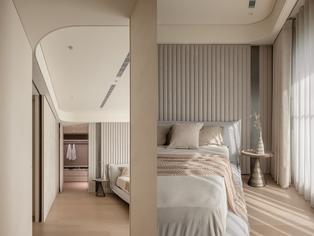 主臥室延續公區的溫暖基調,在光影與質地間描摹出靜謐境地。