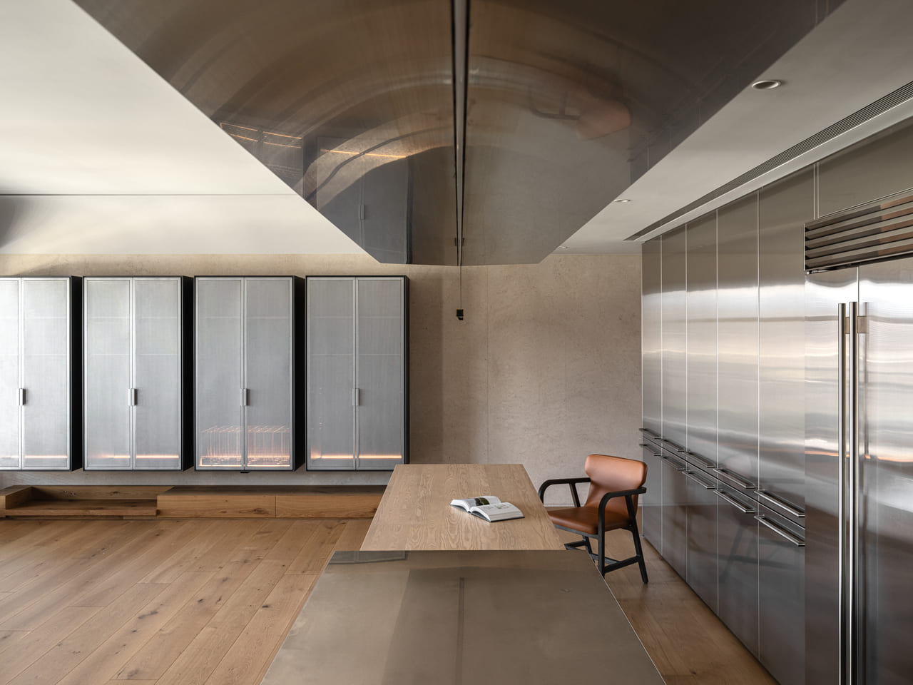 全案的核心價值在於「平衡」,既保留對未來變化的彈性,也兼顧當下對精緻的追尋。為此,家具能依機能需求做出轉換,部分家具來自十多年來的收藏,例如柯比意LC系列、Cab413馬鞍椅等,這些經典之作也替空間細膩注入了歷史的傳承和時代意義。