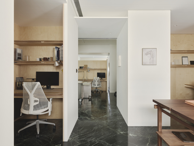結構巧妙地將工作區安排在平面後方,以維繫工作環境的獨立性。