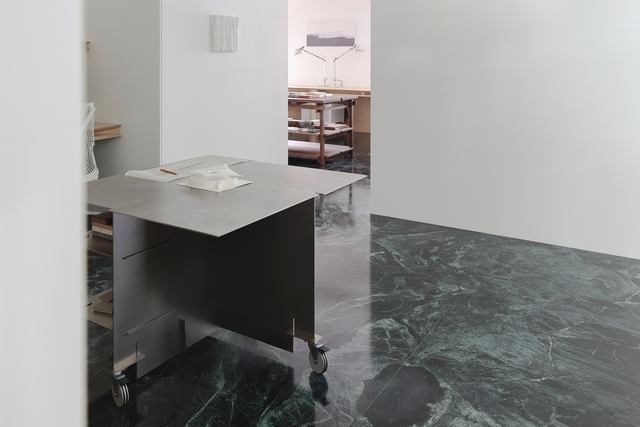 蛇紋石地坪作為首要確認的材質,希冀擷取其經歷自然損耗後依舊風韻十足的效果。