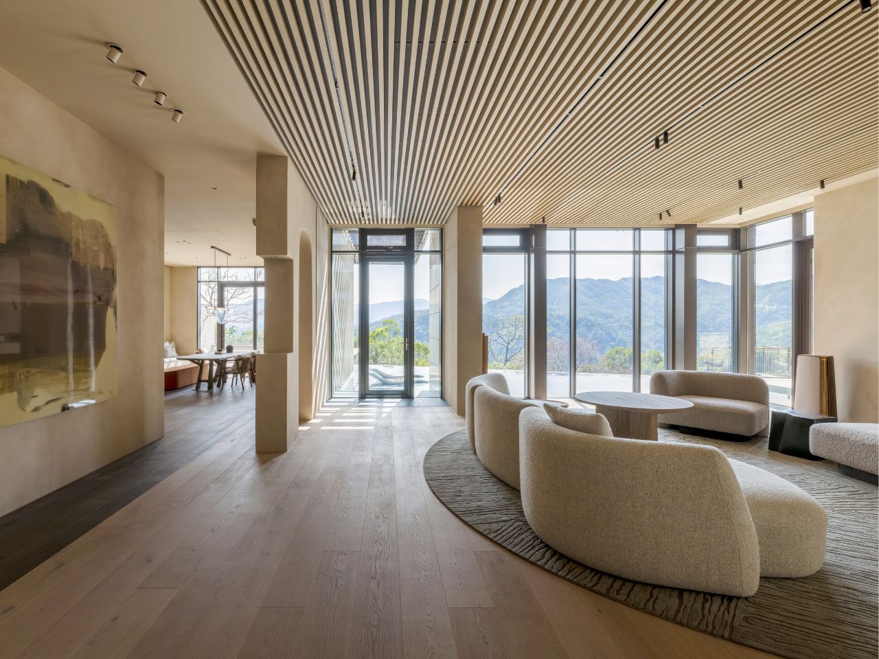 大面落地玻璃迎入遼闊視野,無遮擋的綠意與遠方101,共構動態畫作;窗邊可旋轉單椅給予多樣視角,強化人與環境的親密對話。