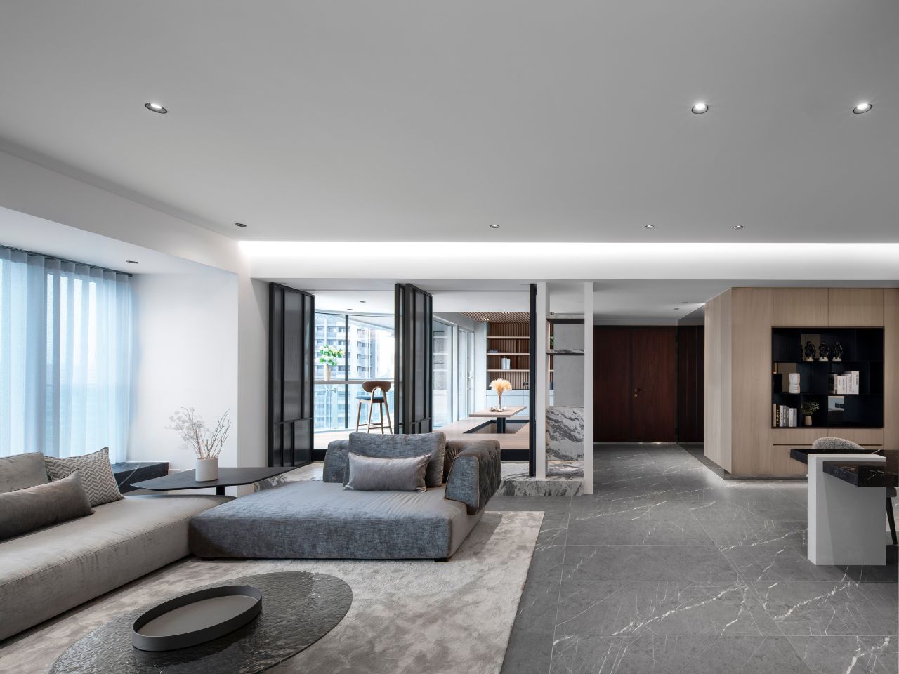 全案設計主軸旨在挑戰傳統極簡主義的邊界。設計師認為,極簡不應等同於匱乏或冷靜,而是一種為生活留白的藝術。整體空間以純淨的白色為基調,彷彿一張未經暈染的宣紙,等待居者用日常點滴來揮灑色彩。為避免單一色調可能帶來的冰冷感,設計師巧妙融入溫潤的木質調,為純粹空間注入些許暖意,並透過語彙間的輕盈疊加,讓空間退居其後,成為承載生活的寧靜背景,而非喧賓奪主的主角。