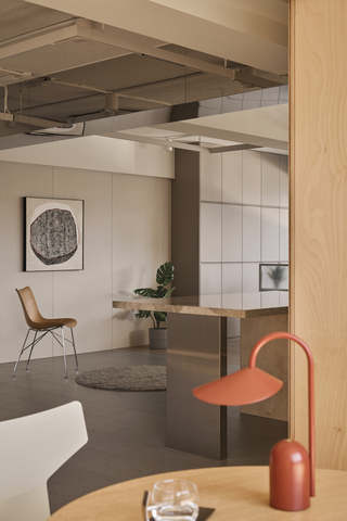 「Mamamia」為網路起家的孕婦裝品牌,歷經多年經營,業主決心重整自身的總部辦公室,呂世民設計師提到,辦公室已不再只是後勤支援的存在,更是品牌形象及消費體驗的延伸,再加上業主也抱持著清晰又不流於制式的期待──它應該舒適、愉快且能激發創意,更重要的是,每一個角落都能隨時轉換成為適合拍攝或直播的場景,而不僅是被單一機能定義的空間。有鑑於此,相即設計團隊遂重新思考辦公、展示與生活感之間的關係,讓全案在秩序中保有表情,在層次中不顯喧嘩。