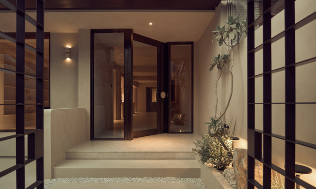 戶外平台經改造化為枯山水庭園,其自然綠意穿過大片玻璃映入室內,成為空間中最靈動的風景。