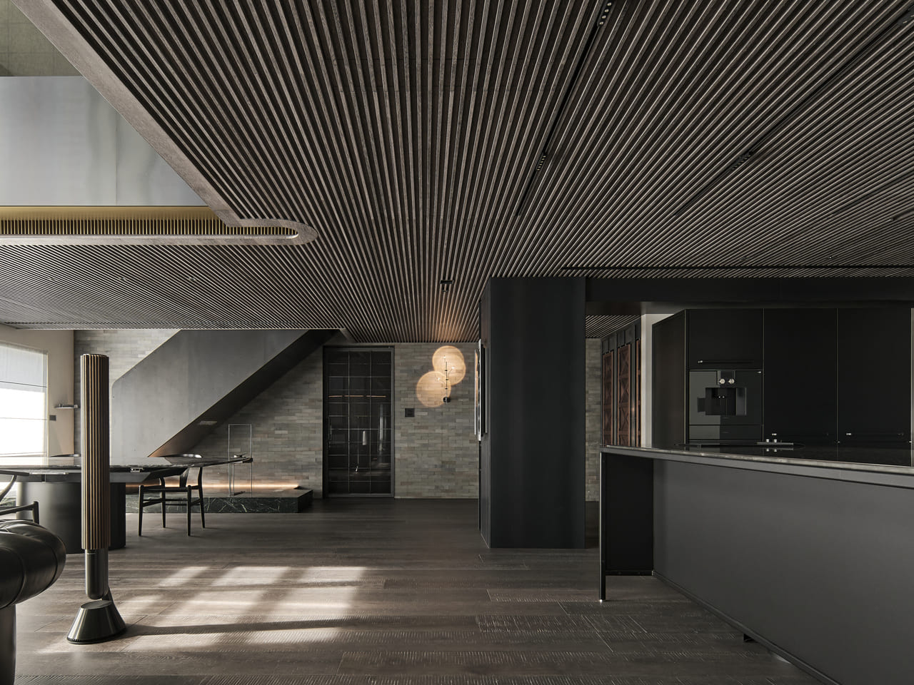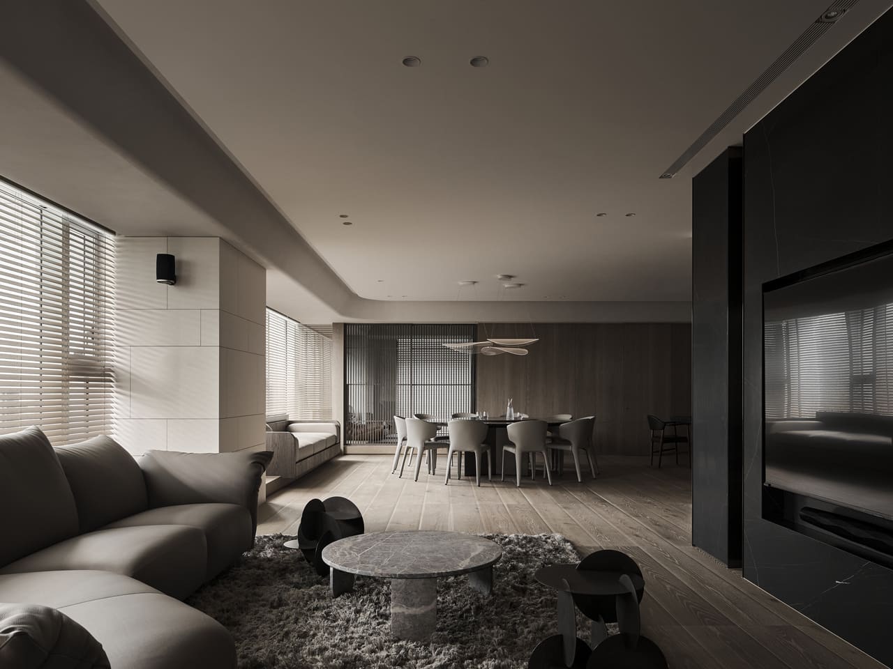 城市的節奏總是匆促,但家的狀態可以從容。在台北小巨蛋周遭的繁忙街廓中,《靜謐.共融》選擇以收斂的姿態描繪生活──不強調形式、不堆疊繁雜,設計的力道退居其後,讓光線與純粹的材質相互鋪敘出可以共處沉澱的場景。