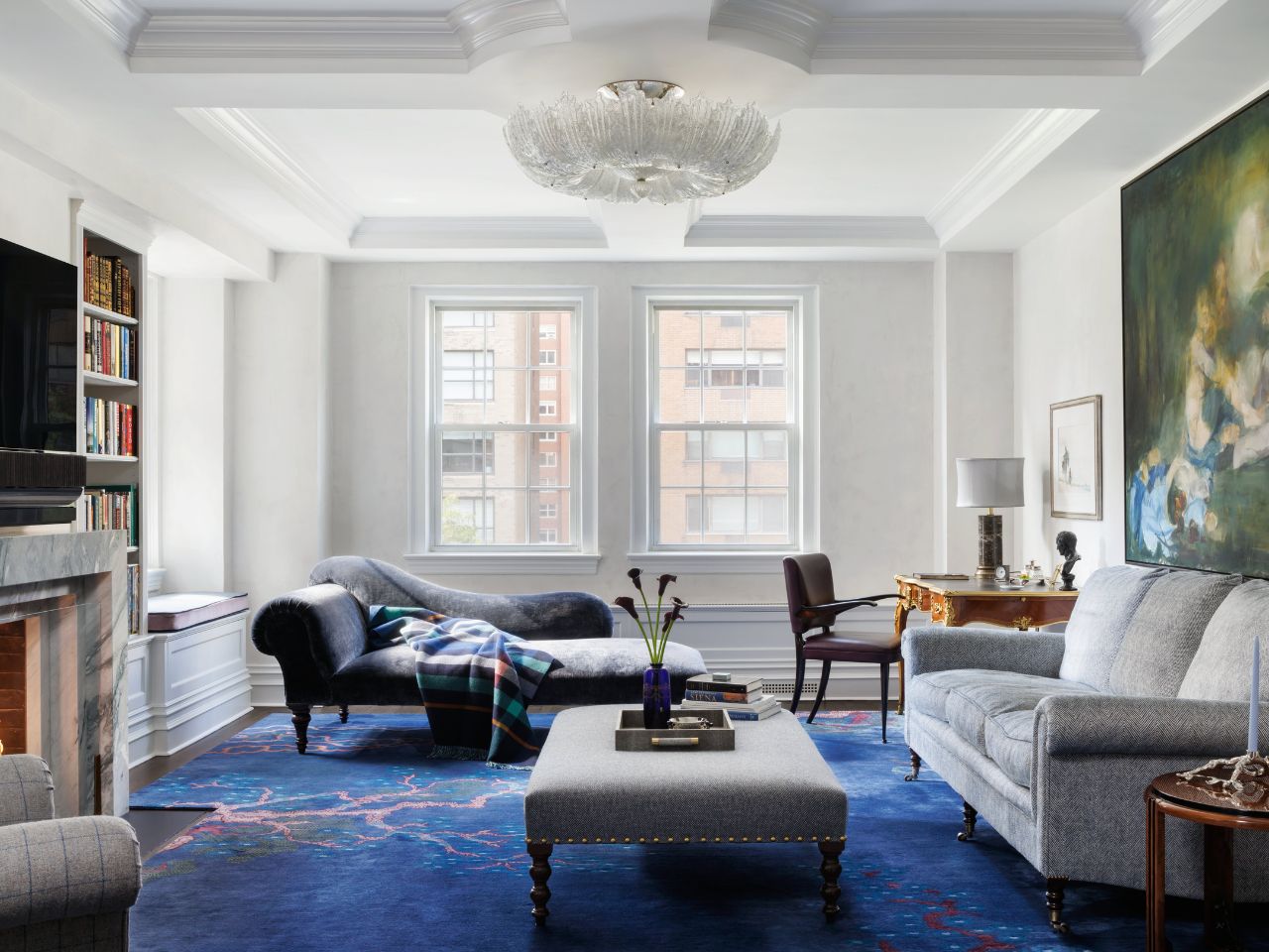 玄關是阻隔外界紛擾與家內寧靜的過渡。設計以對稱構圖與穩重的幾何地坪,築起富儀式感的入門景深。深色木質邊櫃與黑白石材的對比,低調提升整體質感。圓形穹頂天花下,一盞玻璃球燈灑下勻淨光暈,溫柔覆蓋端景藝術品,側牆隱於無形的收納,則確保視野的純粹,悄然預示室內靜謐而富有內涵的風格色彩。