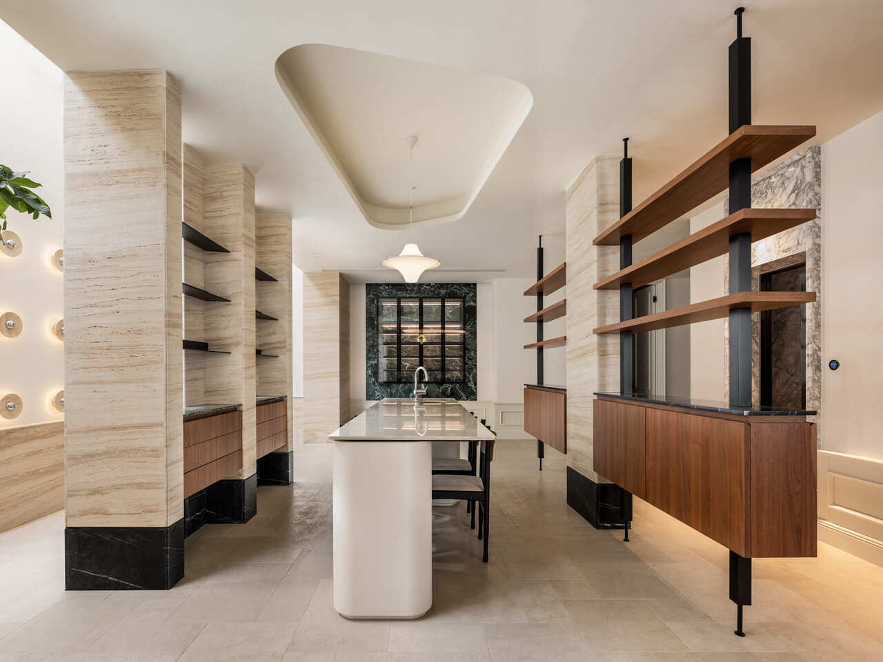 深入其中,通過地處核心的西廚中島串連不同互動模式,環繞此處設置通往不同互動場景的門洞。