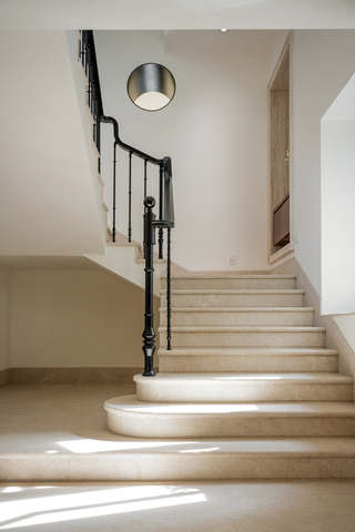 樓梯間藉不同窗口引光,讓空間角落亦流露電影場景般柔美的氛圍。