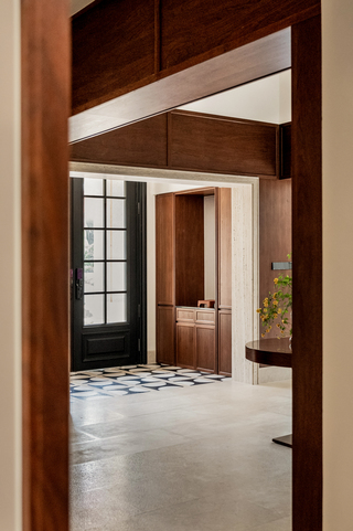 入口地面鋪陳復古花磚,為空間出入奠定活潑不失穩定的第一印象。