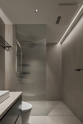 為避免沐浴感到滯悶,採用長虹玻璃立下不完全隔斷的牆面,平衡水氣的流通和使用隱私。