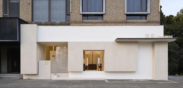 基地位於街區端頭,本身具備良好的視覺條件,設計師捨棄用華麗立面博取注目的效果,而是以柔白溫厚的立面質感,配合自由曲線形體進行精確堆砌,塑造出具有建築美感卻不張揚的城市街道立面,並將純粹克制的用色延伸入室,讓「寶瓷」在公共場域中保有存在感,同時避免傳統奢侈品牌帶給客人的距離與壓迫感受。