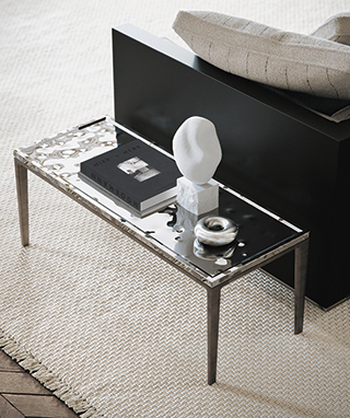 Soleide 咖啡桌與茶几系列,採用壓鑄鋁底座與鏡面鋼桌面。桌面經手工錘紋處理,帶來細緻的金屬紋理效果,呈現兼具工藝與質感的設計語彙。這種全新飾面手法豐富了Maxalto的材質語境,讓堅硬材質展現層次與光感,展現當代義大利家具的精緻工藝。(Bon Maison 栢悅國際)